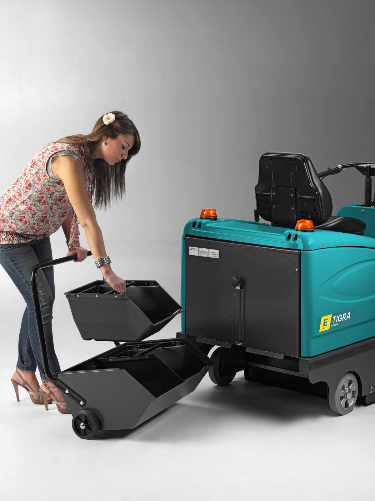 La Tigra est une balayeuse autoportée compacte, idéale pour le nettoyage rapide des zones encombrées, passages étroits et coins difficiles d’accès. Sa motorisation électrique à émission zéro la rend particulièrement adaptée aux sols intérieurs de moyennes dimensions, offrant efficacité et confort pour l’opérateur.