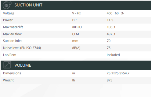Le CV126 de Delfin est un ventilateur triphasé à canal latéral fiable, sans entretien, protégé par une armoire insonorisante. Dans le cadre d’un système d’aspiration centralisé, il garantit des opérations de nettoyage efficaces des poussières et des matériaux solides à transporter en un seul point.