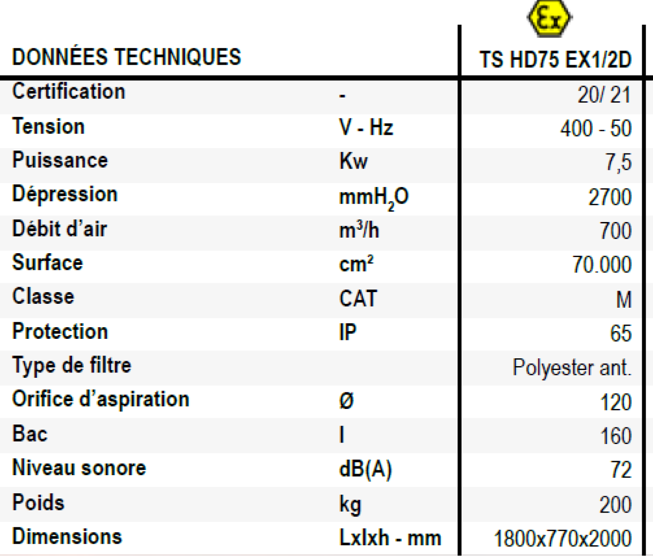 Les TS HD certifiés 1/2D sont des aspirateurs indiqués pour l'aspiration de grandes quantités de matières solides et poudreuses dans des zones classées ATEX Z21.