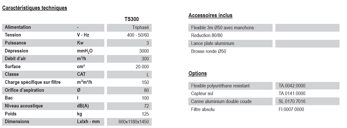 Cet aspirateur peut être utilisé en poste fixe ou mobile ou également raccordé à un réseau d’aspiration.