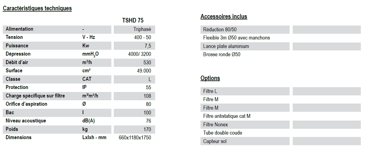 Ces aspirateurs ne nécessitent pas d’entretien régulier et peuvent fonctionner 24/24h. Ils sont équipés de série et d’une soupape de décharge.