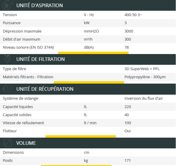L'aspirateur MEKA220IF est conçu pour aspirer les huiles et les émulsions, même mélangées aux copeaux et aux dépôts huileux créés par les opérations de coupe et de menuiserie. Avec une capacité de 220 litres de liquide, il est en mesure de travailler longuement pour éliminer les huiles utilisées à l'intérieur des machines CNC, en les séparant des copeaux et autres résidus métalliques par le biais du panier qui peut contenir jusqu'à 40 litres de matériel. Une fois filtrées, les huiles aspirées peuvent être évacuées via le système de flux inversé pour garantir leur réutilisation. Le moteur de 3 kW garantit des performances élevées et est protégé par le filtre superweb 3D qui bloque les éventuels brouillards d'huile.