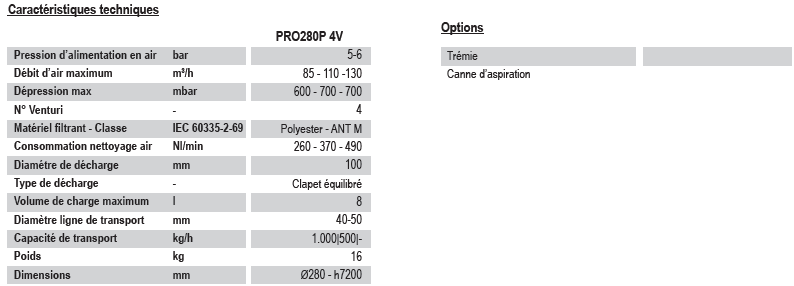 Transport pneumatique en phase dense, équipé d’une pompe à venturi multi-buse, certifié pour utilisation alimentaire et certifiable pour les zones ATEX 22. Transport conseillé pour les poudres de >1μm et granulés non fluides pour lesquels il n’est pas nécessaire de préserver l’intégrité du produit.