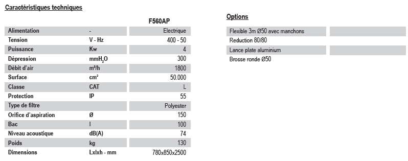 La grande capacité du réservoir de collecte de 100 litres et le puissant moteur de 4 kW garantissent l'efficacité de l'appareil, même en cas d'utilisation continue et sans entretien.