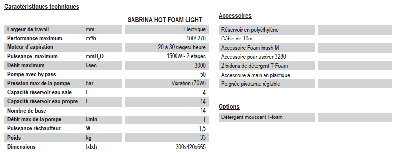 La Sabrina Hot Foam Light permet de nettoyer rapidement et en surfaces les matières les plus fragiles.